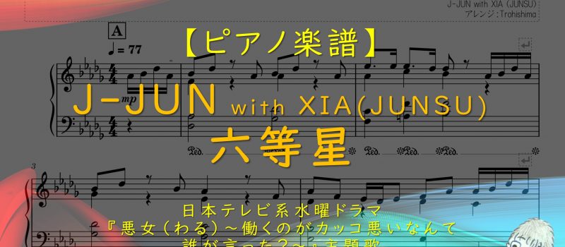 【楽譜】六等星 / J-JUN with XIA (JUNSU) – ドラマ『悪女(わる)~働くのがカッコ悪いなんて誰が言った?~』主題歌 当サイトではTrohishimaがアレンジ楽譜を公開しています。 ま … 続きを読む 六等星 / J-JUN with XIA (JUNSU)